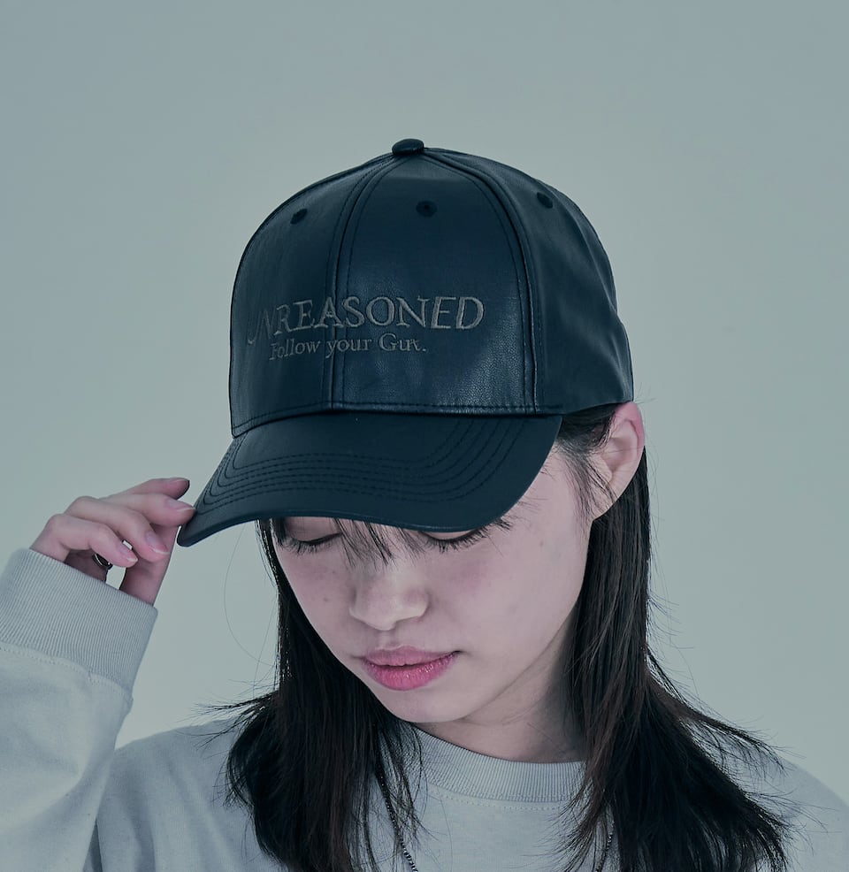UNREASONEDのBrand Logoを刺繍で施したレザーキャップ。